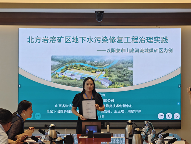 本次研讨会紧扣时代主题,汇聚了国内众多知名学者,围绕矿山生态修复、山水林田湖草沙系统治理、矿区生态产业发展等议题展开深入交流。公司城市地质调查研究院副院长郑立红作了题为《北方岩溶煤矿区地下水污染修复工程治理实践——以阳泉市山底河流域煤矿区为例》的专题报告。报告融理论与实践于一体,系统阐述了治理思路、关键技术应用与实际成效,既展示了技术创新的突破性进展,也总结了工程实践的宝贵经验,引起与会专家的广泛共鸣,取得了良好的交流效果,充分彰显了公司在该领域的深厚积累与技术领先优势。