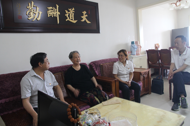 张京俊书记一行首先来到学府街地矿小区83岁的老党员陈家研家中,认真询问她的身体状况以及家庭生活情况,鼓励她保重身体、对她积极向上的乐观精神表示充分的认可与赞誉,并鼓励她患重病的儿子张杰要坚定信心,保持良好心态,安心养病。