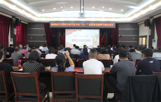 地调院党委按照党中央、省委及省地勘局党组关于做好学习贯彻习近平总书记在庆祝中国共产党成立100周年大会上重要讲话精神专题宣讲的通知要求,高度重视并作出具体安排,及时开展工作。于9月9日下午,在院多功能厅举办学习贯彻习近平总书记“七一”重要讲话精神专题宣讲,院长和党委书记分别进行宣讲。