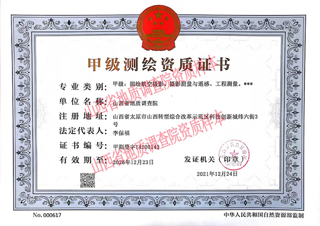 为适应地勘单位改革新形势,积极开拓新市场,提升单位实力,在院领导和各部门、中心的的大力支持下,我院在完成乙级测绘资质复审换证的基础上,于12月初提交了甲级测绘资质申请, 12月24日取得甲级测绘资质证书,资质类别包含测绘航空摄影、摄影测量与遥感、工程测量三个专业。