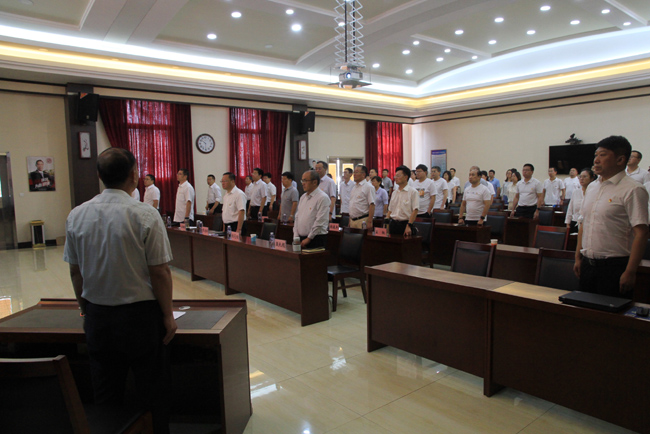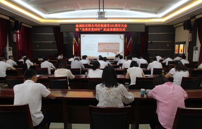 为庆祝中国共产党成立101周年,充分展现公司始终坚持以高质量党建引领高质量发展的蓬勃活力,激励全公司党员干部奋发努力、勇毅前行,以实际行动迎接党的二十大胜利召开。7月1日,地调院有限公司召开庆祝中国共产党成立101周年大会暨“光荣在党50年”纪念章颁发仪式?;嵋橛傻澄?、副总经理王朝峰主持,公司班子成员、各支部委员和机关全体党员参加会议。