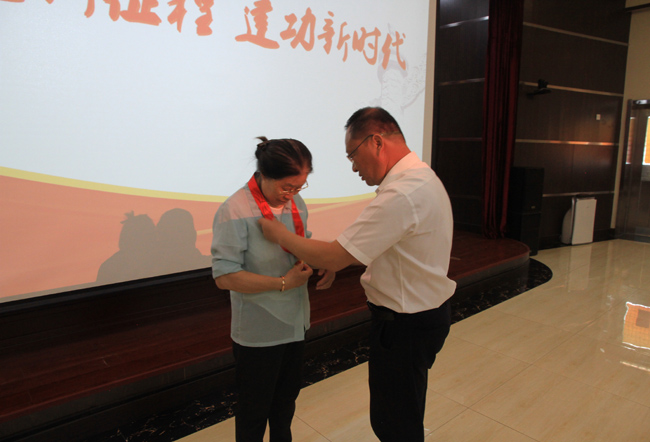 会议在庄严的国歌中拉开帷幕。公司党委书记、董事长李爱民为到场的老党员张亮瑜颁发“光荣在党50年”纪念章,对老党员们为党的事业做出的重要贡献表示感谢并致以崇高敬意。