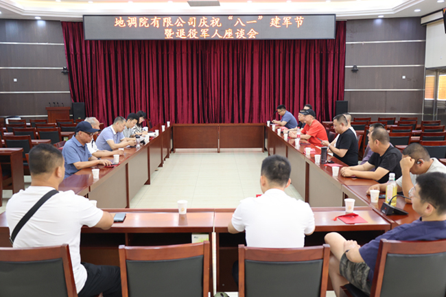 在八一建军节来临之际,为了向公司退役军人致以崇高敬意和节日问候,地调院有限公司于 2024 年 7 月 31 日上午举行了庆祝“八一”建军节暨退役军人座谈会。公司领导、退役军人齐聚一堂,共同缅怀军旅岁月,畅谈企业发展。