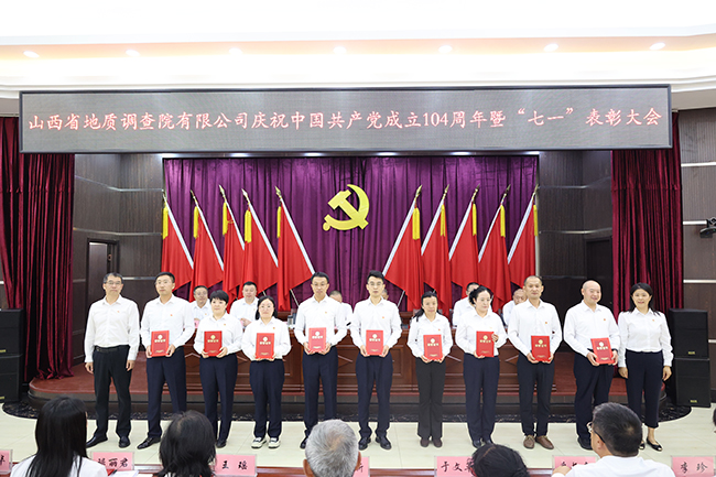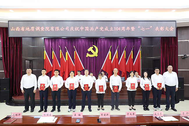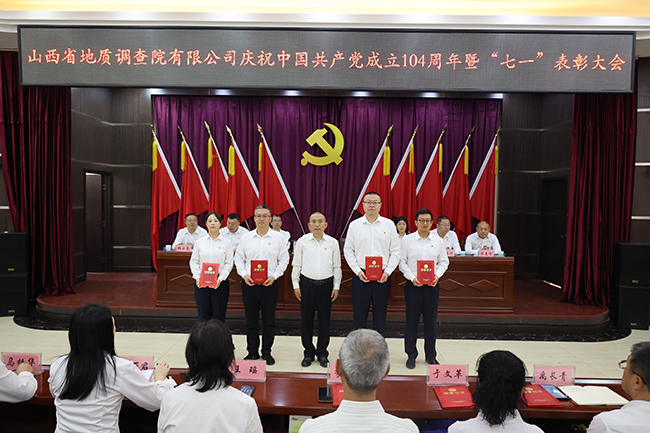 6月27日,山西省地质调查院有限公司召开庆祝中国共产党成立104周年暨“七一”表彰大会,深入学习贯彻习近平新时代中国特色社会主义思想,激励全体党员干部赓续红色血脉,凝聚奋进力量。党委副书记、副董事长、总经理韩武波主持会议。