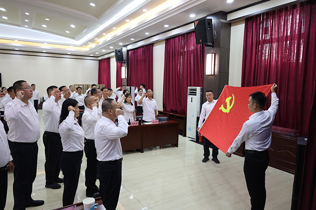 在神圣的入党宣誓环节,2024年度新党员面向党旗许下铮铮誓言。“我将把入党誓词镌刻在心、落实于行,在新时代地质工作中践行初心使命……”新党员赵艳丽的发言道出了全体党员的共同心声。随后,在党委书记带领下,全体党员重温入党誓词,铿锵誓言彰显了地质工作者永远听党话、跟党走的坚定信念。
