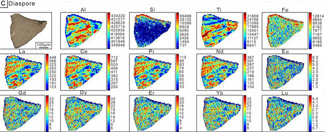 研究明确了稀土的主要 “藏身之处”—— 硬水铝石。分析显示,这种矿物中的稀土含量远超其他矿物,最高可达 11666ppm,其承载的稀土总量占铝土矿总稀土的 75% 以上,是稀土的主要宿主矿物。