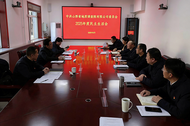 2月5日,山西省地质调查院有限公司党委召开2025年度领导班子民主生活会。会议紧扣学习贯彻习近平新时代中国特色社会主义思想主题,全面落实党的二十届四中全会精神,深入开展批评与自我批评,取得“团结-批评-团结”的实效。地质集团党委委员、副总经理赵政,综合管理部副部长刘海军,副处级干部弓晋强到会指导,公司党委书记、董事长李爱民主持会议,全体领导班子成员参加。