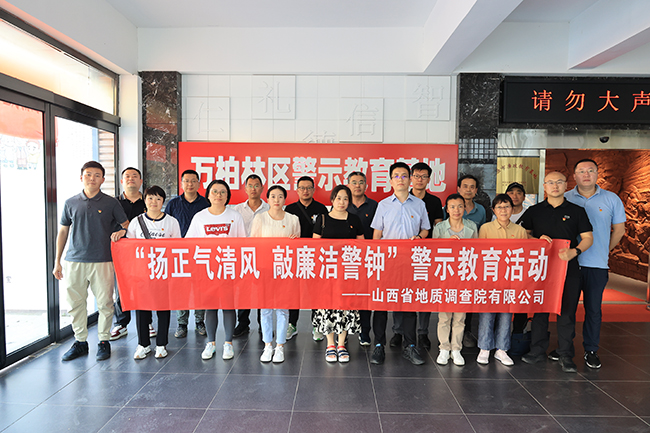 为深入开展主题教育和教育整顿,推动党员干部以学铸魂、以学正风,进一步加强党性党风党纪教育,以案为鉴、以案示警、以案促改,筑牢拒腐防变思想防线。6月14日下午,山西省地质调查院有限公司纪委组织公司党支部书记、委员以及全体纪检干部赴万柏林区警示教育基地,开展“扬正气清风 敲廉洁警钟”警示教育活动。